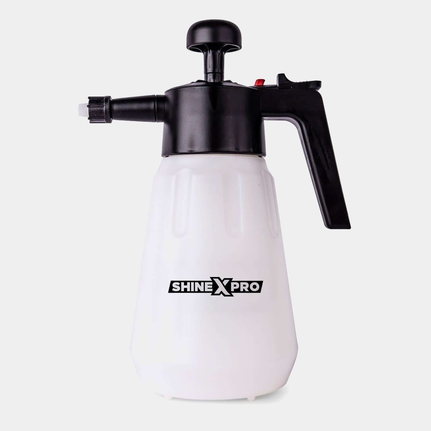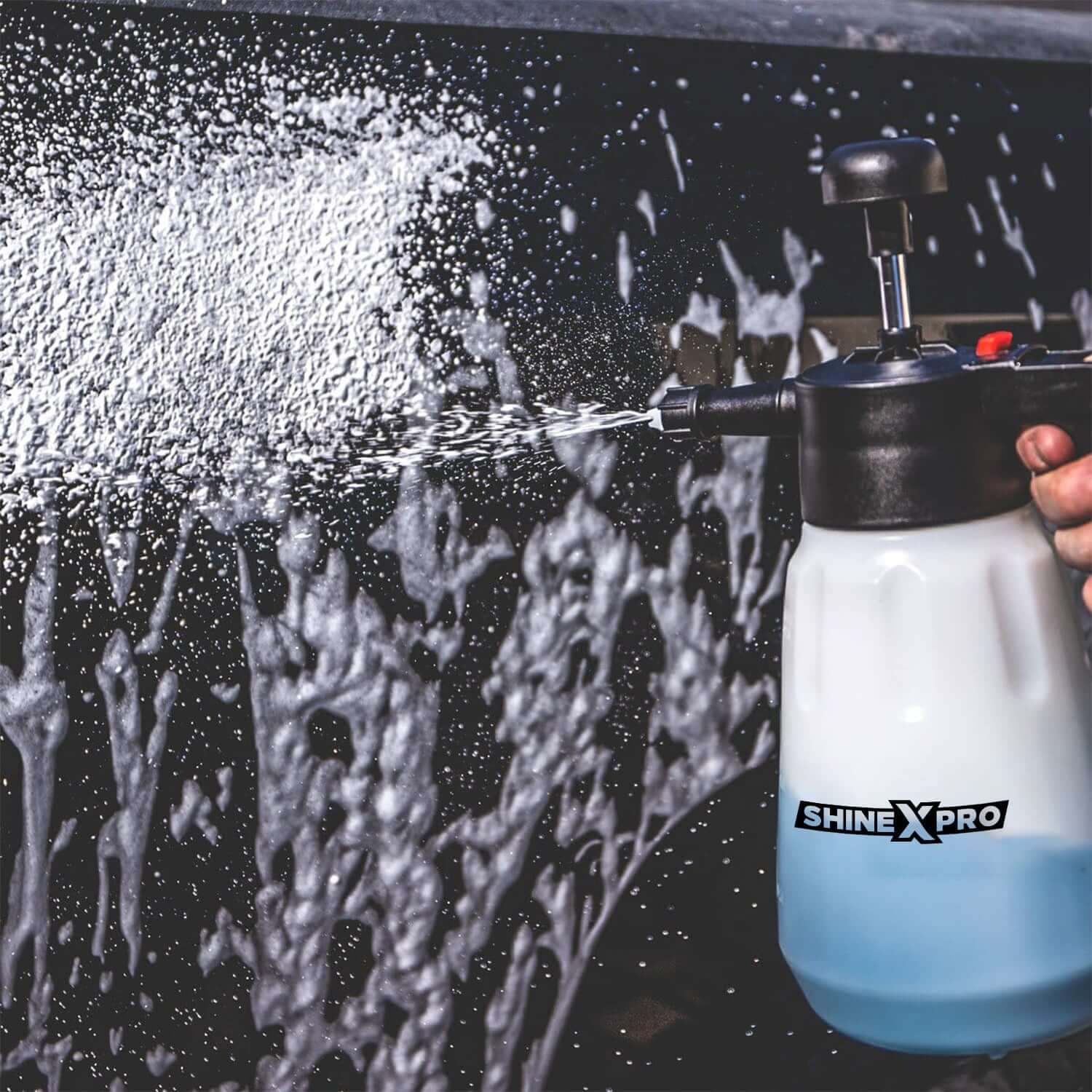 A snow foam cannon that will cover your automobile with a rich soapy lather in seconds.