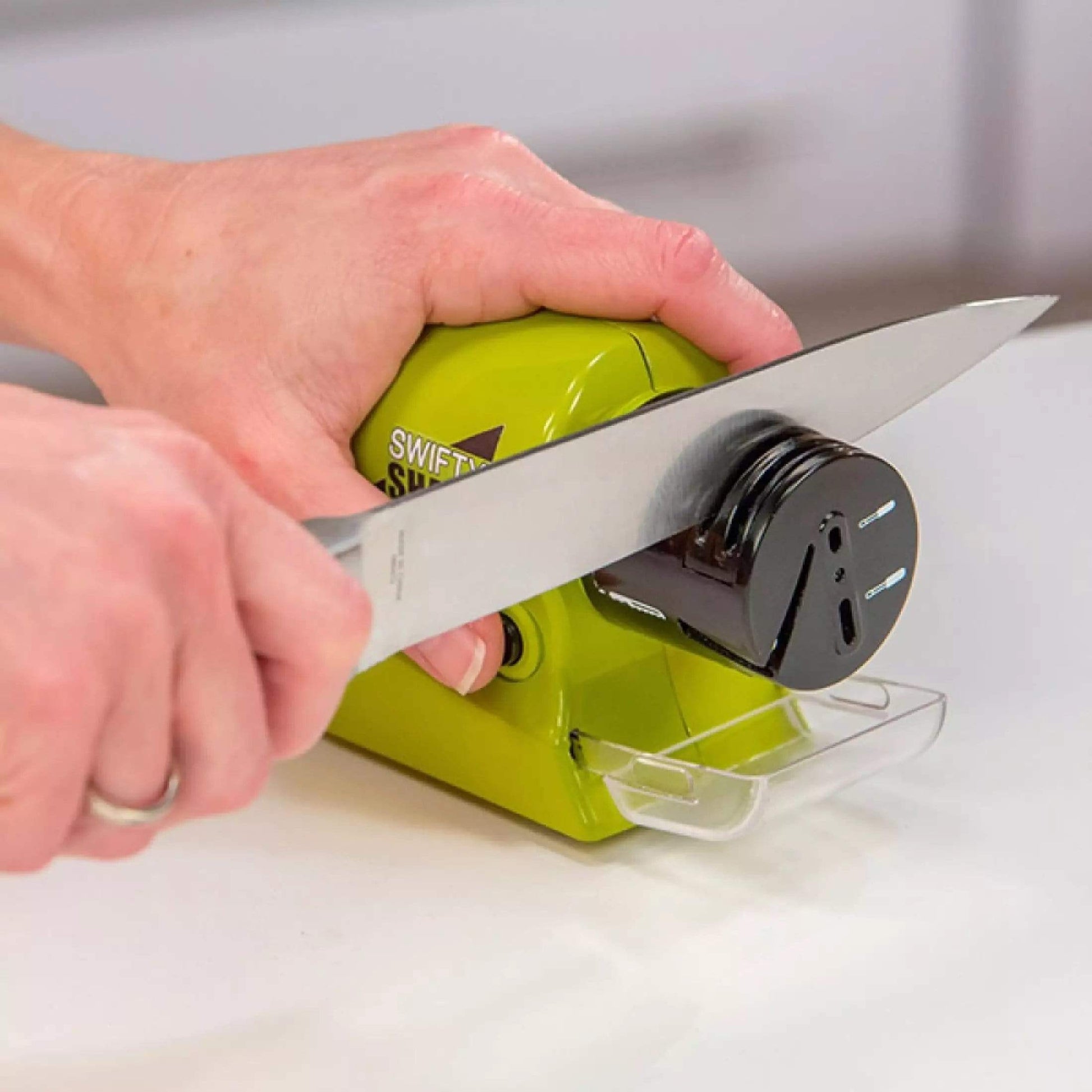 It is a motorized knife sharpener that restores the razor edge of blades in seconds.