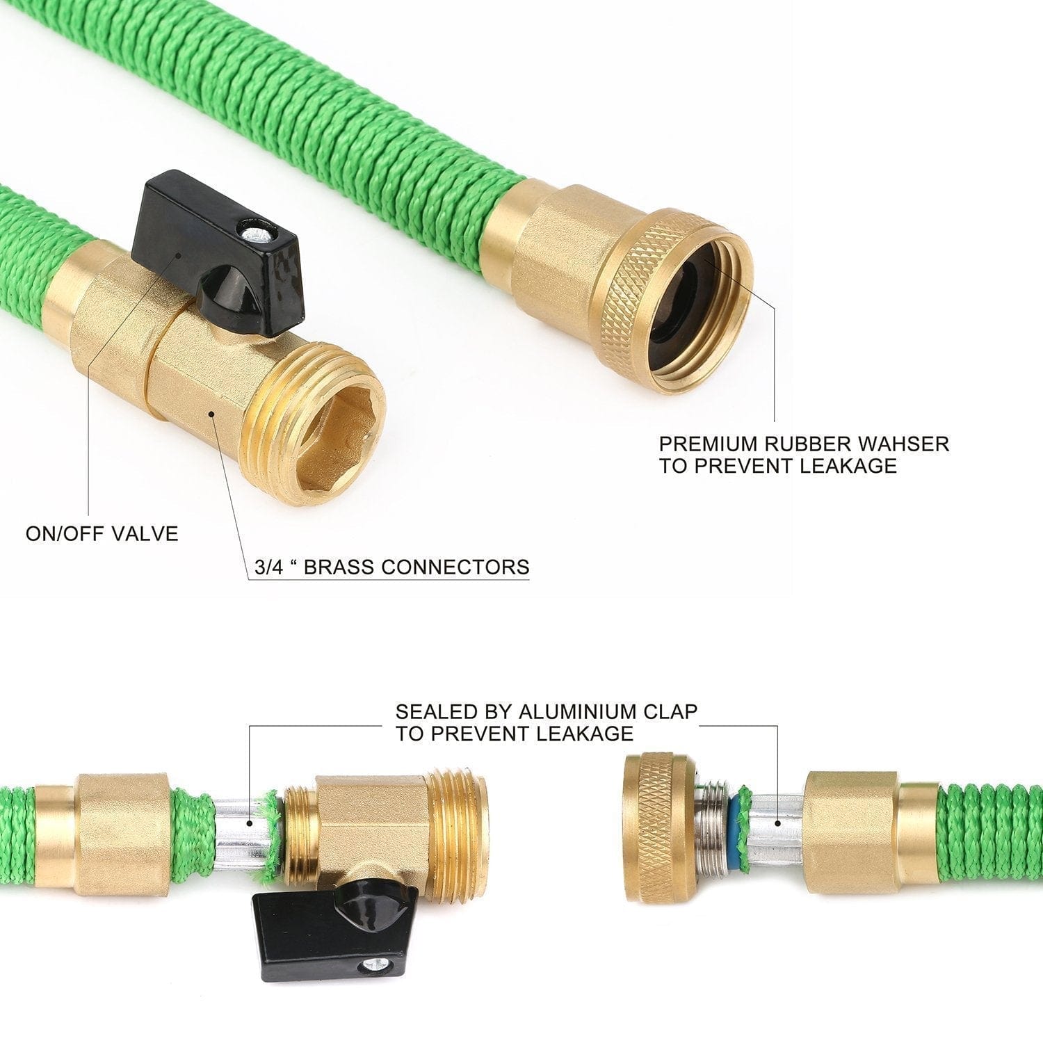 This lightweight hose automatically contracts back to its original size when the water is shut off and easily fits into small spaces, saving you the extra struggle of storing or moving bulky garden hoses around.