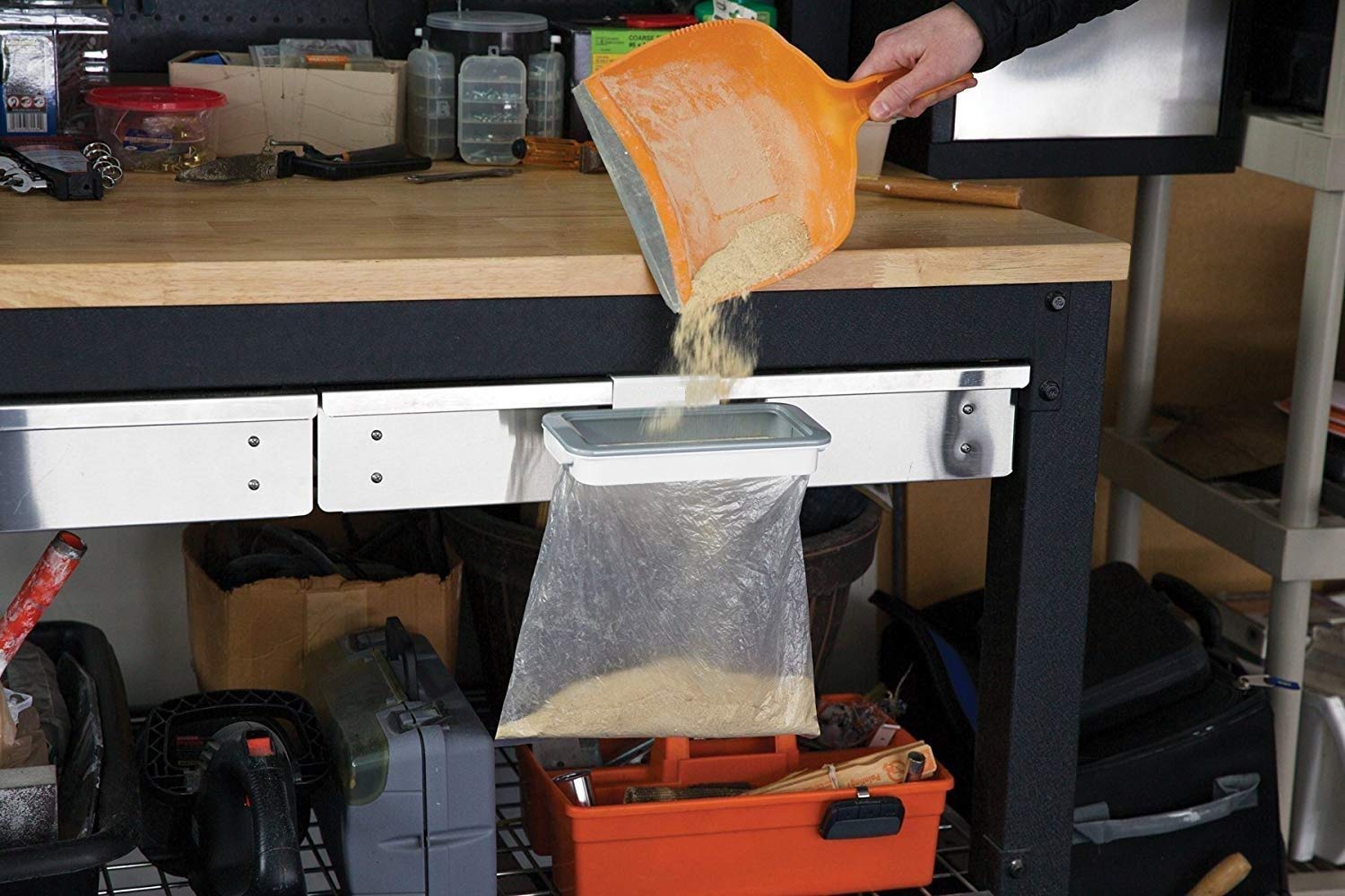 This is a garbage bag holder that can be clipped on any counter or shelf whenever you need to clear out the mess.
