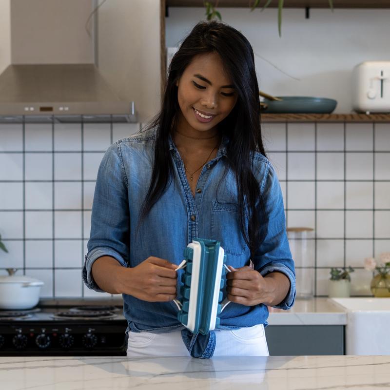 This pop-up ice cube maker gives you 18 perfectly large cubes of ice even when taken out of the freezer for hours.
